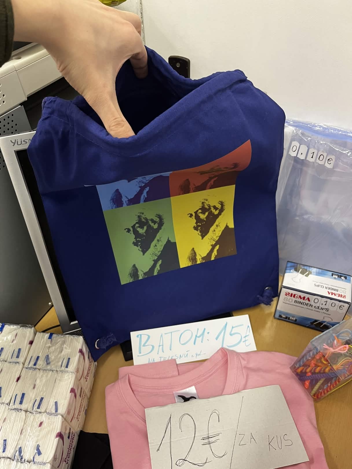 Ukážkové kusy: V „kopírke" máme pripravené vzorové kusy, kde si môžeš naživo pozrieť a vyskúšať kvalitu materiálu a potlače. Niektoré kusy sú dostupné ihneď na predajni – bez čakania!