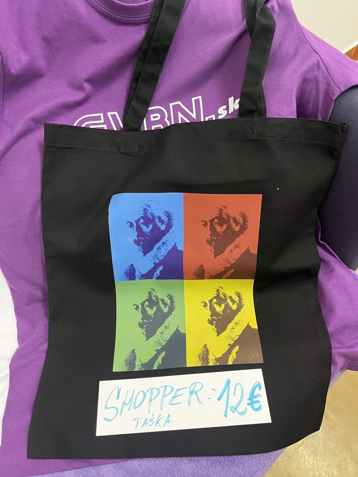| 🎒 Batoh | 15 € | 13 € | Látkový batoh s GVBN tématickou potlačou, ideálny na telesnú, 100% bavlna |